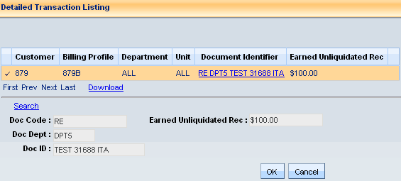 There is a limit to the number of lines that any Excel workbook can hold. Because of this limit, the download feature has been built with a 2000 line limit. Downloads of heavily used customer accounts may likely encounter this limit, in which case another reporting means should be sought. Just as documents are not listed online that have had a net impact of zero on a customer account amount, the download will not display those either. This is a result of the download being only the set of records returned in the online query. For example, the entry of an earned receivable on a receivable document that is then cancelled will not be listed as an update to an earned unliquidated receivable from the first version that was reversed on the cancellation.