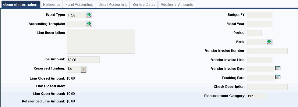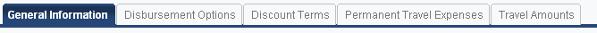 The Vendor section on the TA contains the same tabs as the GAX. The TA also contains the Permanent Travel Expenses and Travel Amounts subsections. Please refer to the "Travel Encumbrance (TE)" section for screen shots and field definitions for the Travel Amounts tab. The Permanent Travel Expenses tab is unique to the TA subtype.